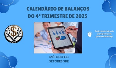 Saiba quando as empresas de estudo do Projeto ECI (Economia Comportamental para Investir) vão divulgar seus resultados trimestrais, temporada que costuma trazer muitos anúncios de proventos (dividendos e juros sobre capital próprio).